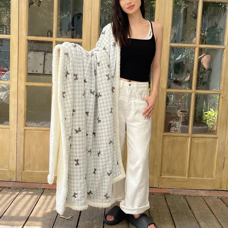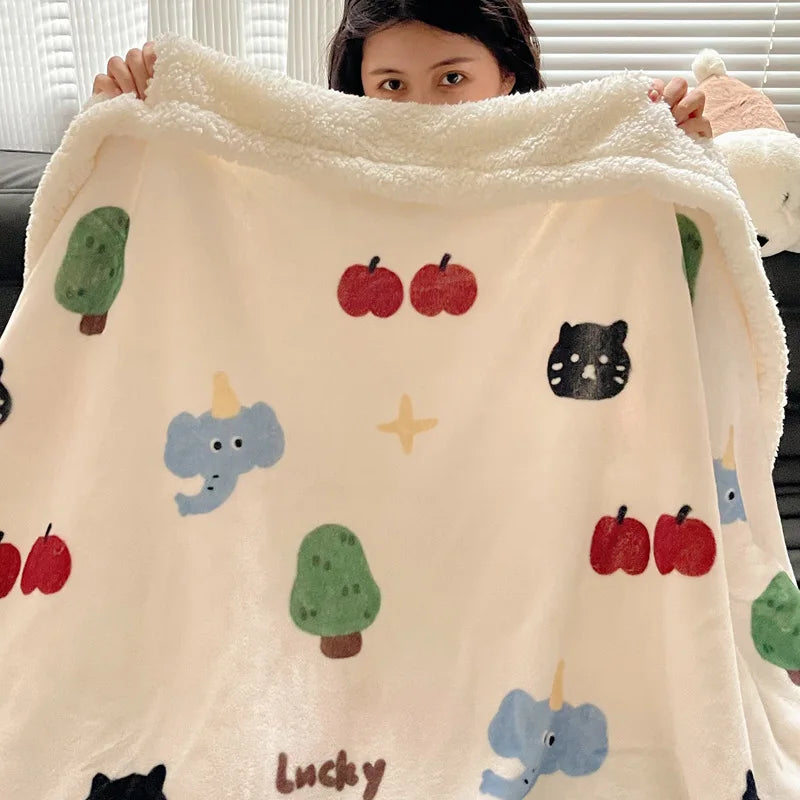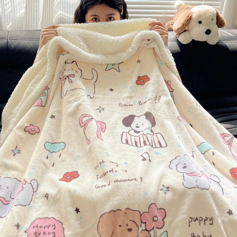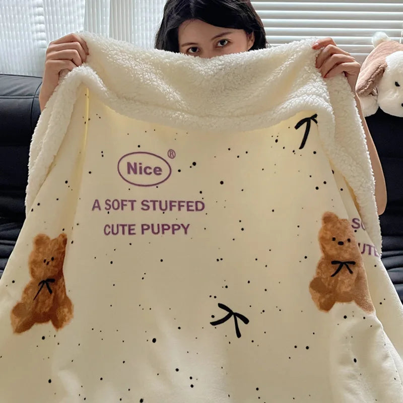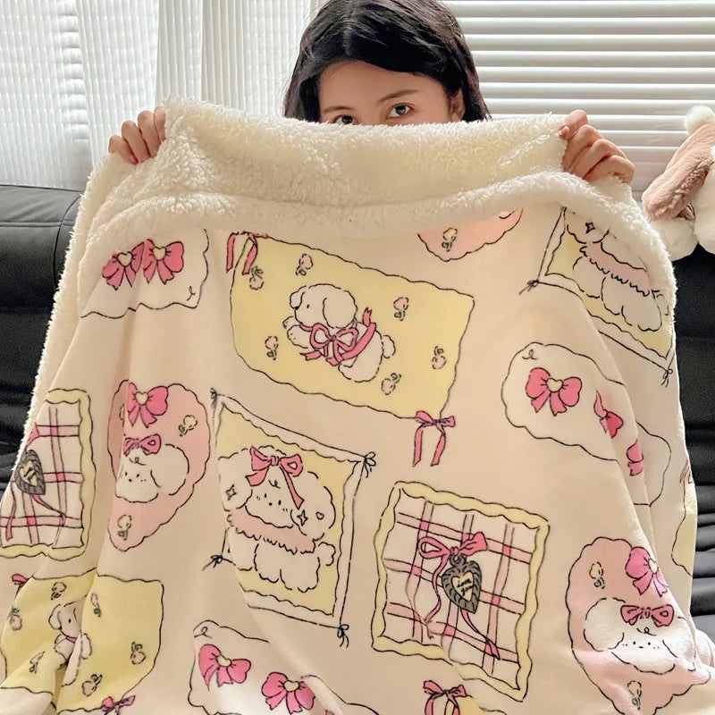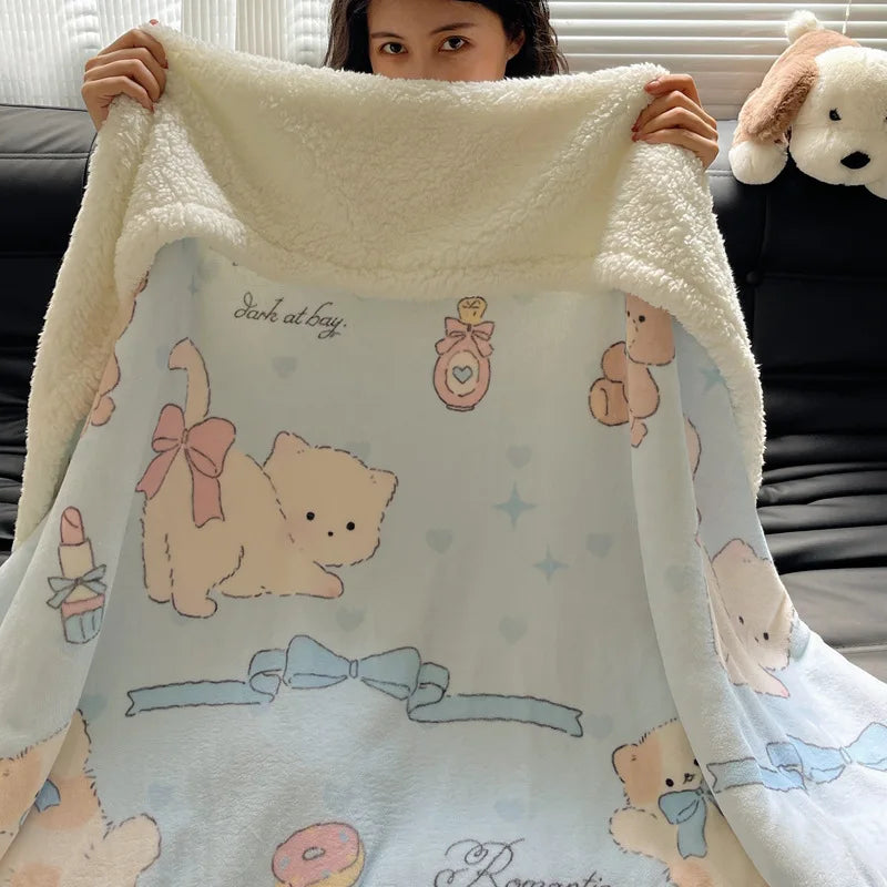 Embrace the winter season with this Korean Style blanket that offers a cozy and soft touch, perfect for any occasion. The cartoon pattern adds a playful touch to your living space, making it a versatile addition to your home decor.