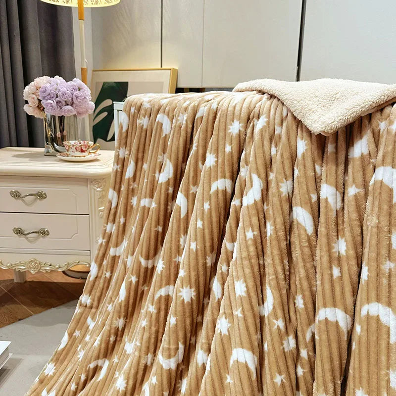 Upgrade your comfort level with the Afralia™ Star Moon Striped Fleece Blanket and experience the perfect blend of style and functionality. Stay cozy all winter long with this qualified and stylish addition to your home.