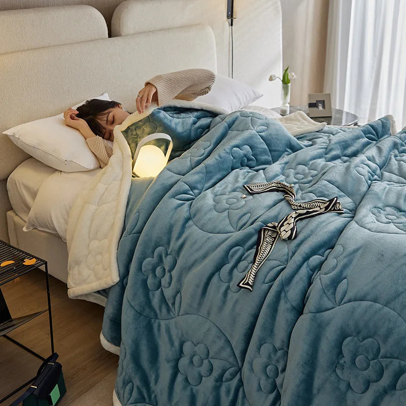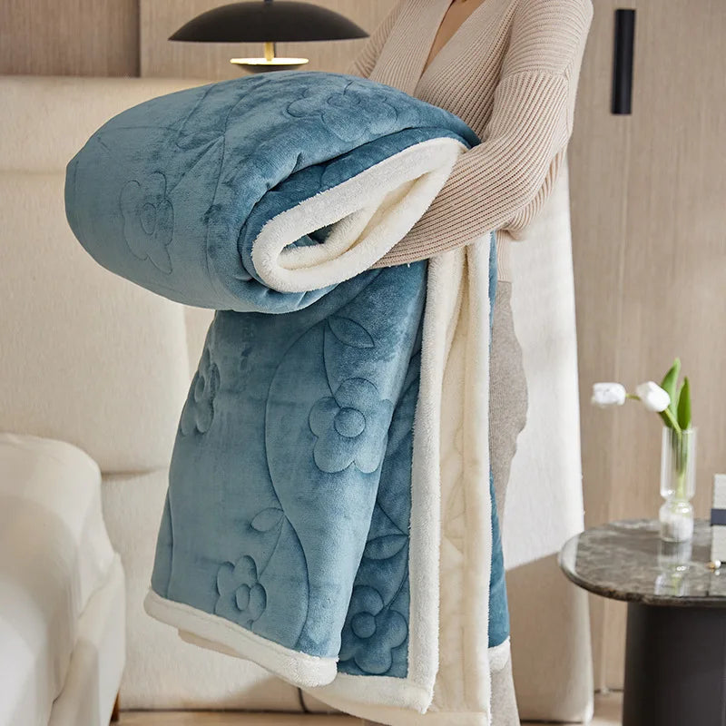 Upgrade your living space with the Afralia™ Cozy Three-Layer Lamb Wool Sofa Blanket and indulge in luxury and warmth this winter season.