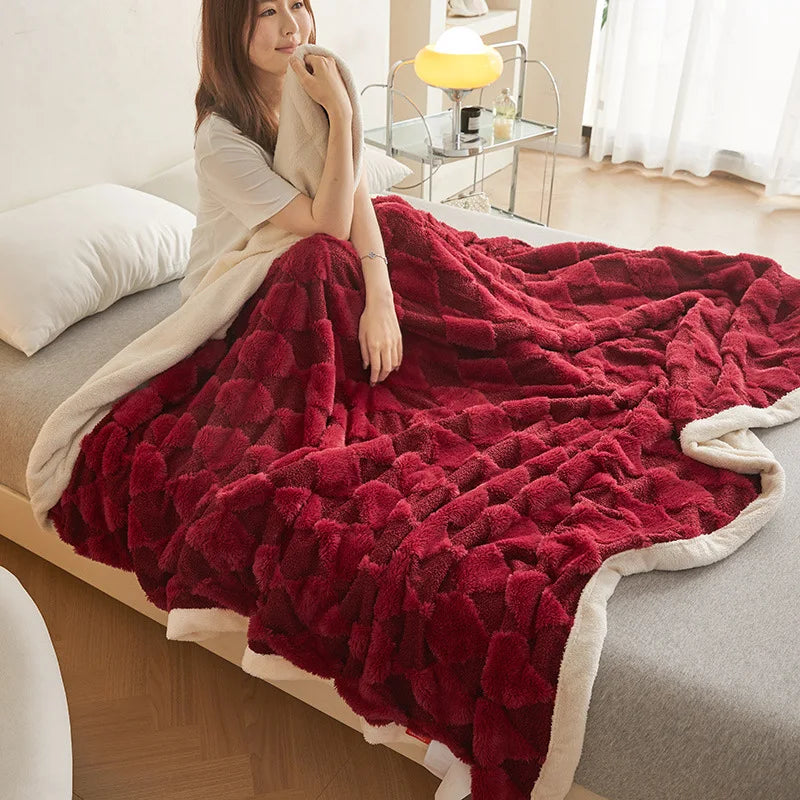 Introducing the luxurious Afralia™ Rabbit Velvet Plaid Jacquard Blanket, a warm and double-layered comforter designed for adults seeking ultimate comfort and style.