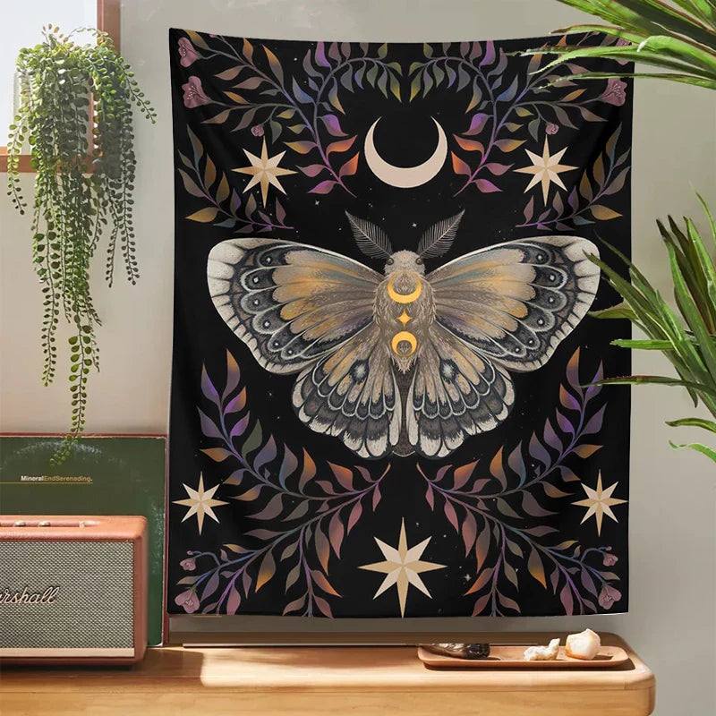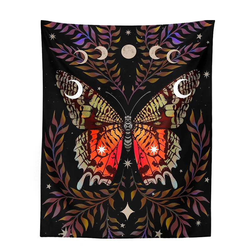 Afralia™ Moon Phase Butterfly Vintage Aesthetic Tapestry Butterfly Star Room Decor