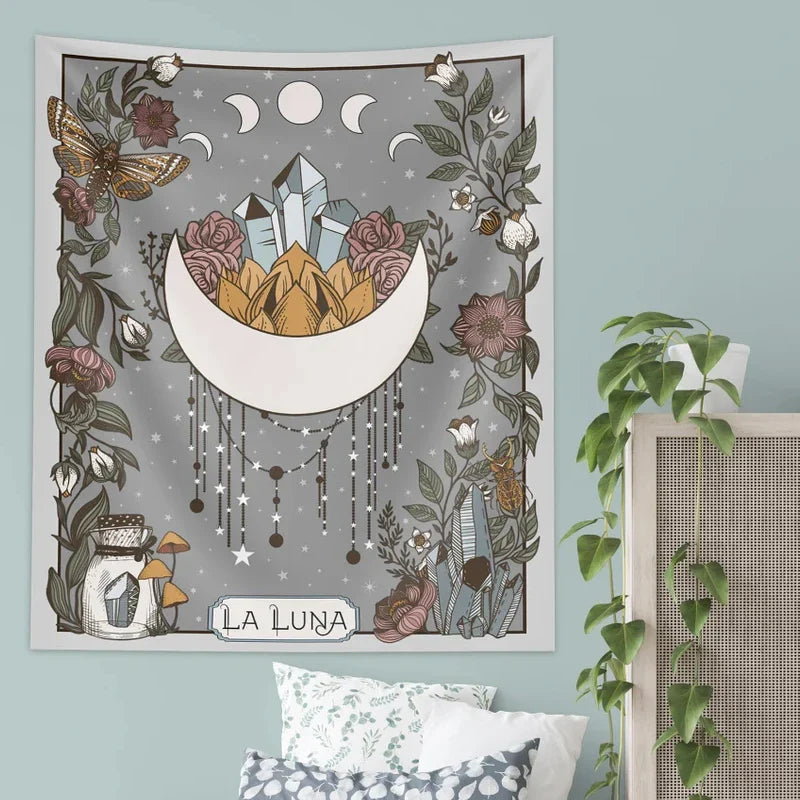 Afralia™ Moon Phase Tarot Card Tapestry Wall Hanging: Psychedelic Nature Wall Art