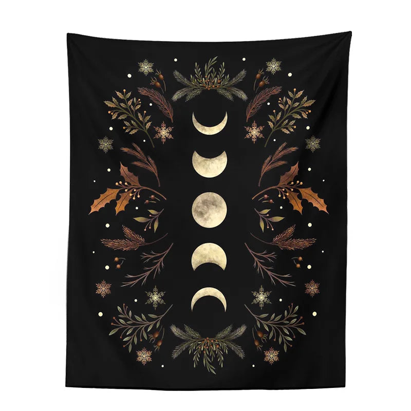 Afralia™ Moon Phase Boho Wall Tapestry: Black Psychedelic Carpet for Home Decor