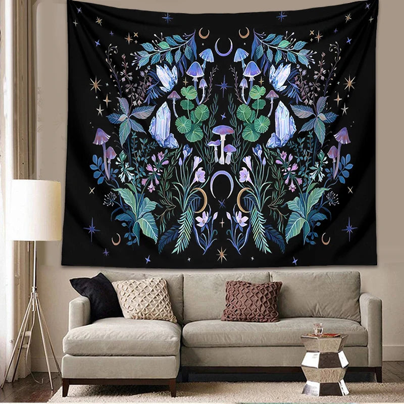 Afralia™ Moon Moth Mushroom Forest Mandala Tapestry Botanical Bedroom Decor