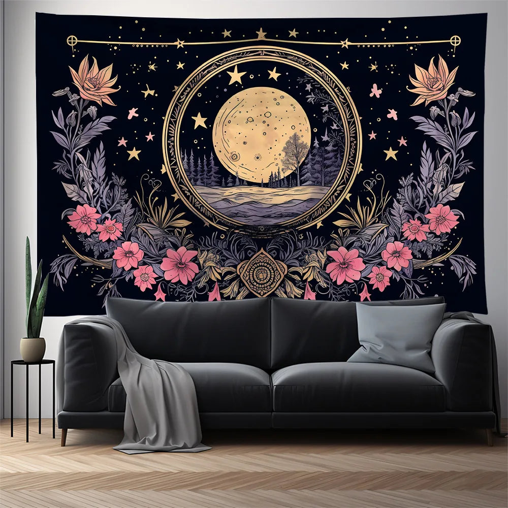 Afralia™ Moon Phase Nordic Flower Wall Hanging Tapestry