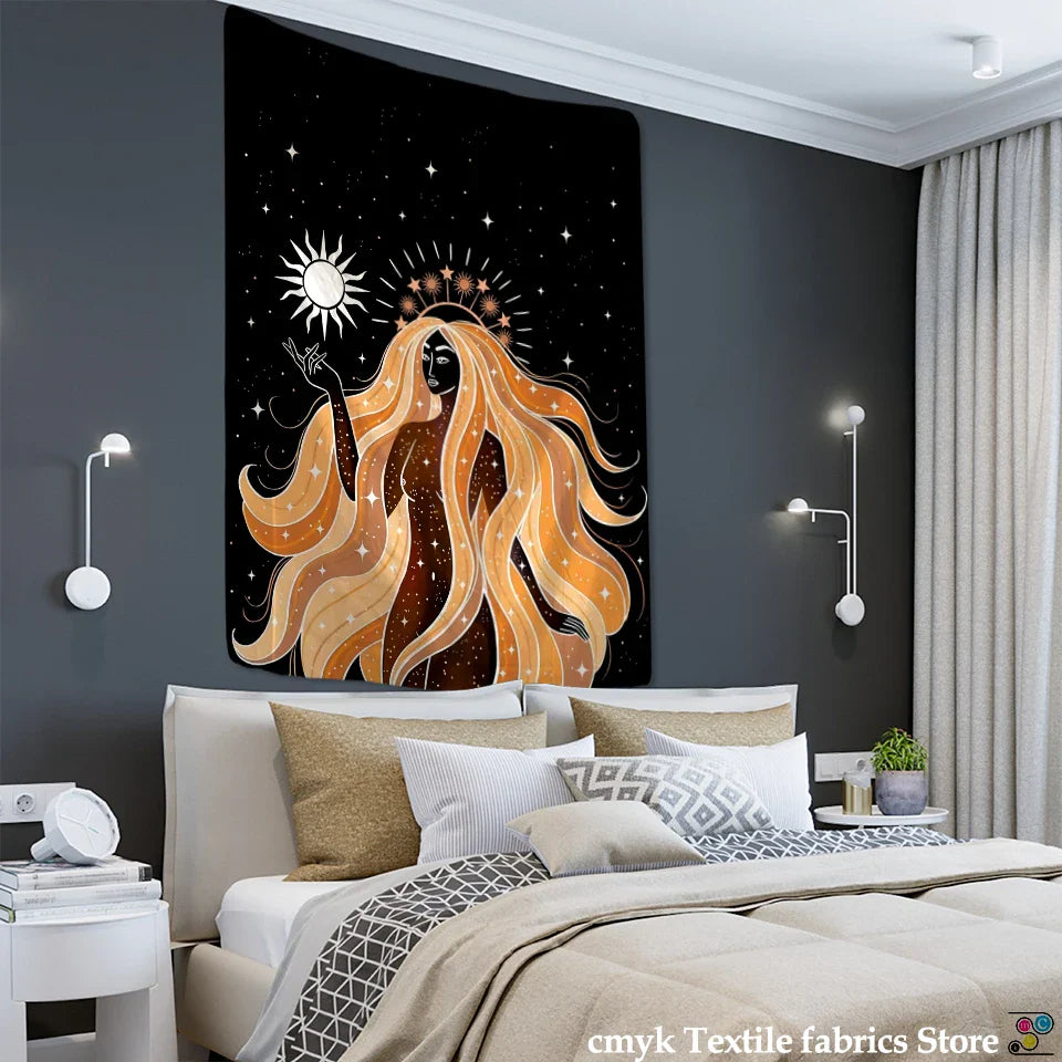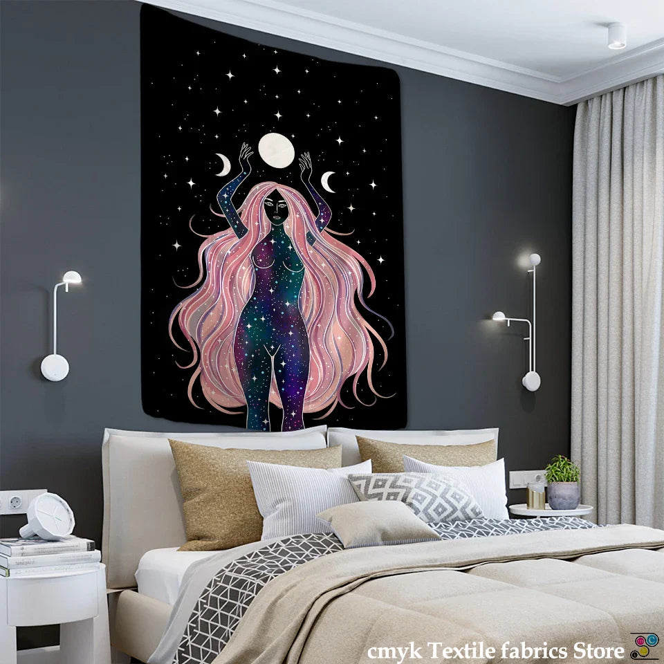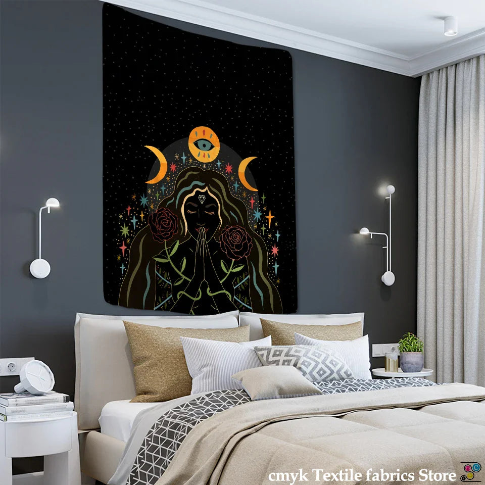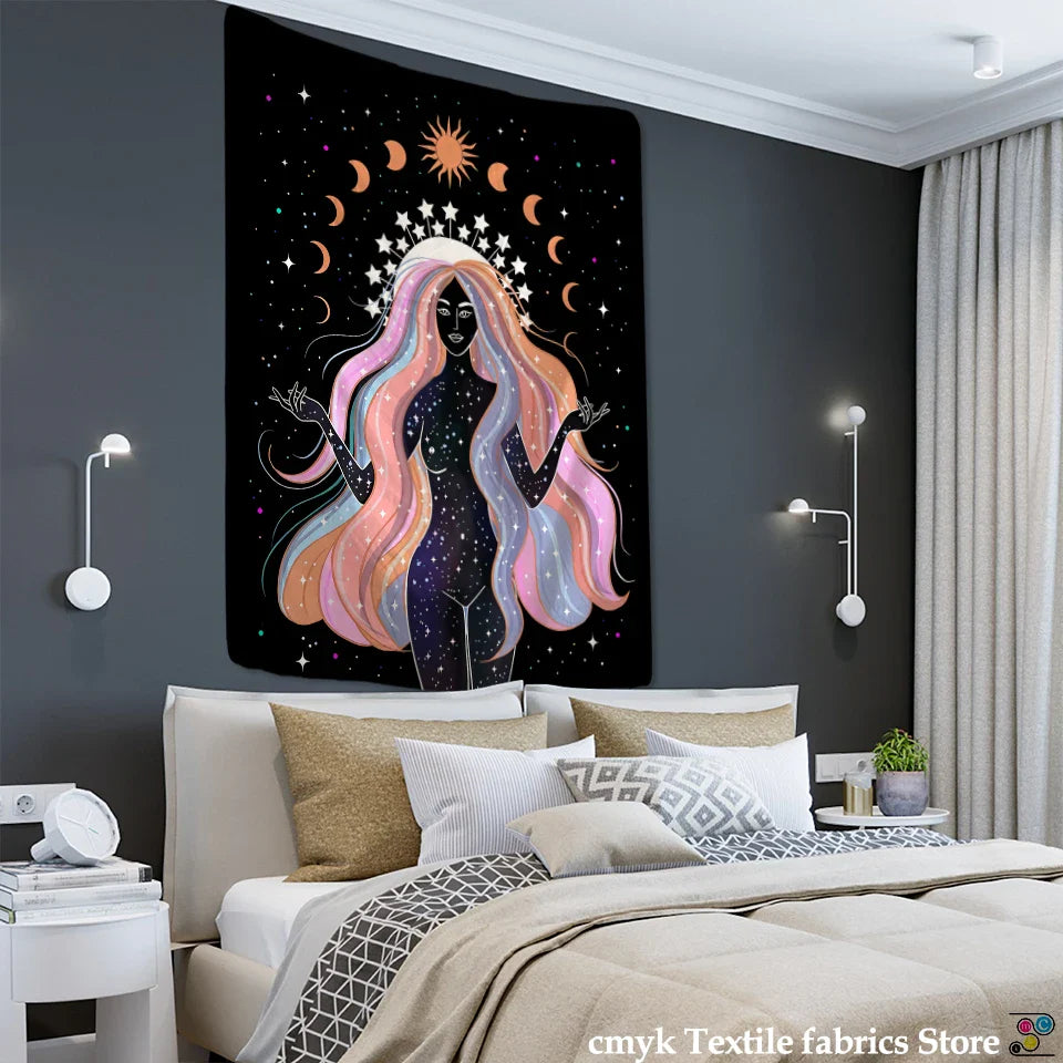 Afralia™ Moon Phase Girl Mandala Tapestry: Bohemian Hippie Wall Hanging for Psychedelic Home Decor