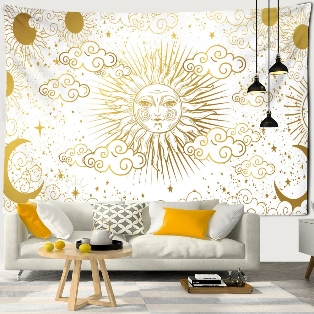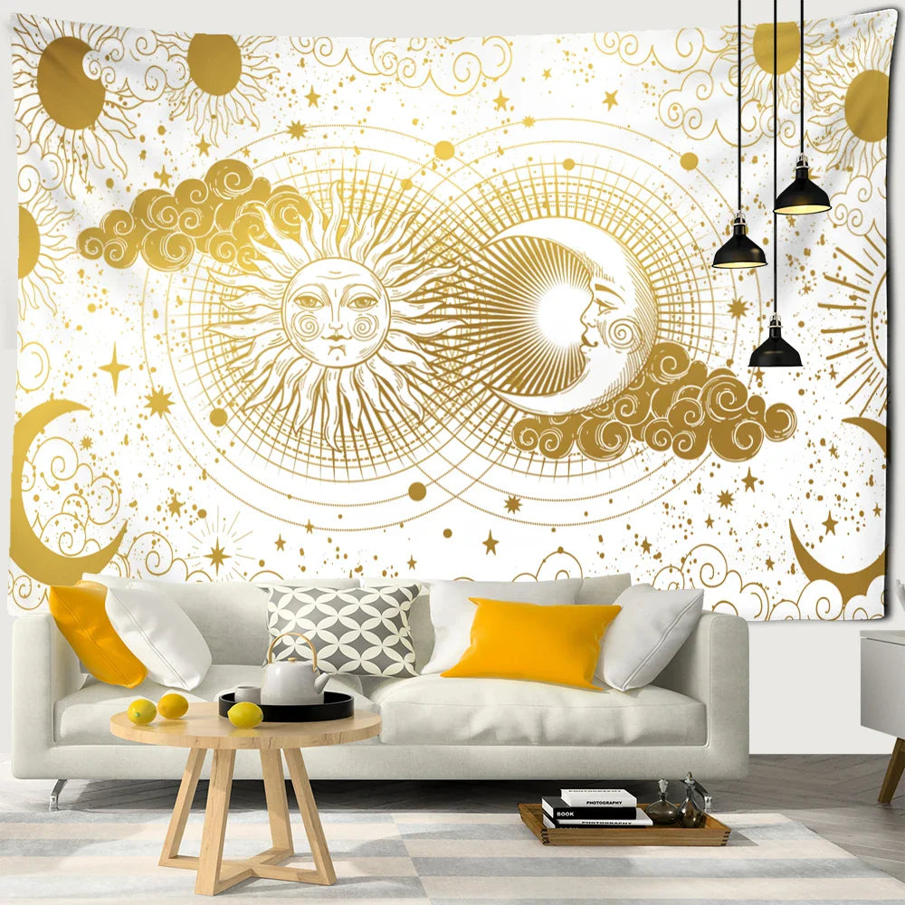 Fantasy Sun Moon Tapestry Wall Hanging Bohemian Hippie Witchcraft Decor by Afralia™