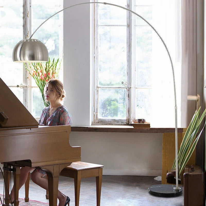 Afralia™ Nordic Marble Wooden Arc Floor Lamp Silver Study Lighting
