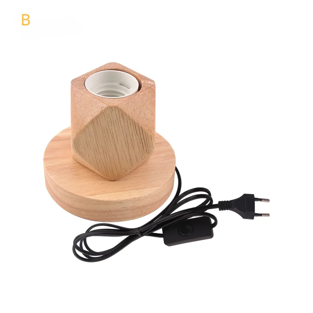 Solid Wood Table Lamp with E27 Base Socket, Switch Line, and Simple Design