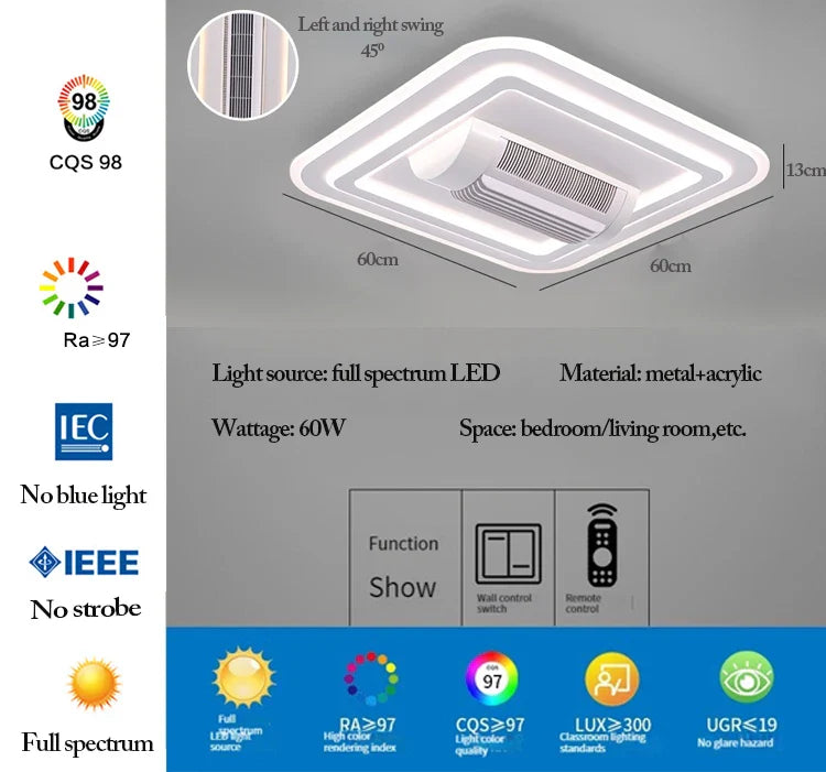 The Afralia™ LED Bladeless Ceiling Fan features a full spectrum of LED lights, offering a wide range of lighting options to suit your preferences. With a dimmable remote control, you can easily adjust the brightness to create the perfect atmosphere for any occasion.