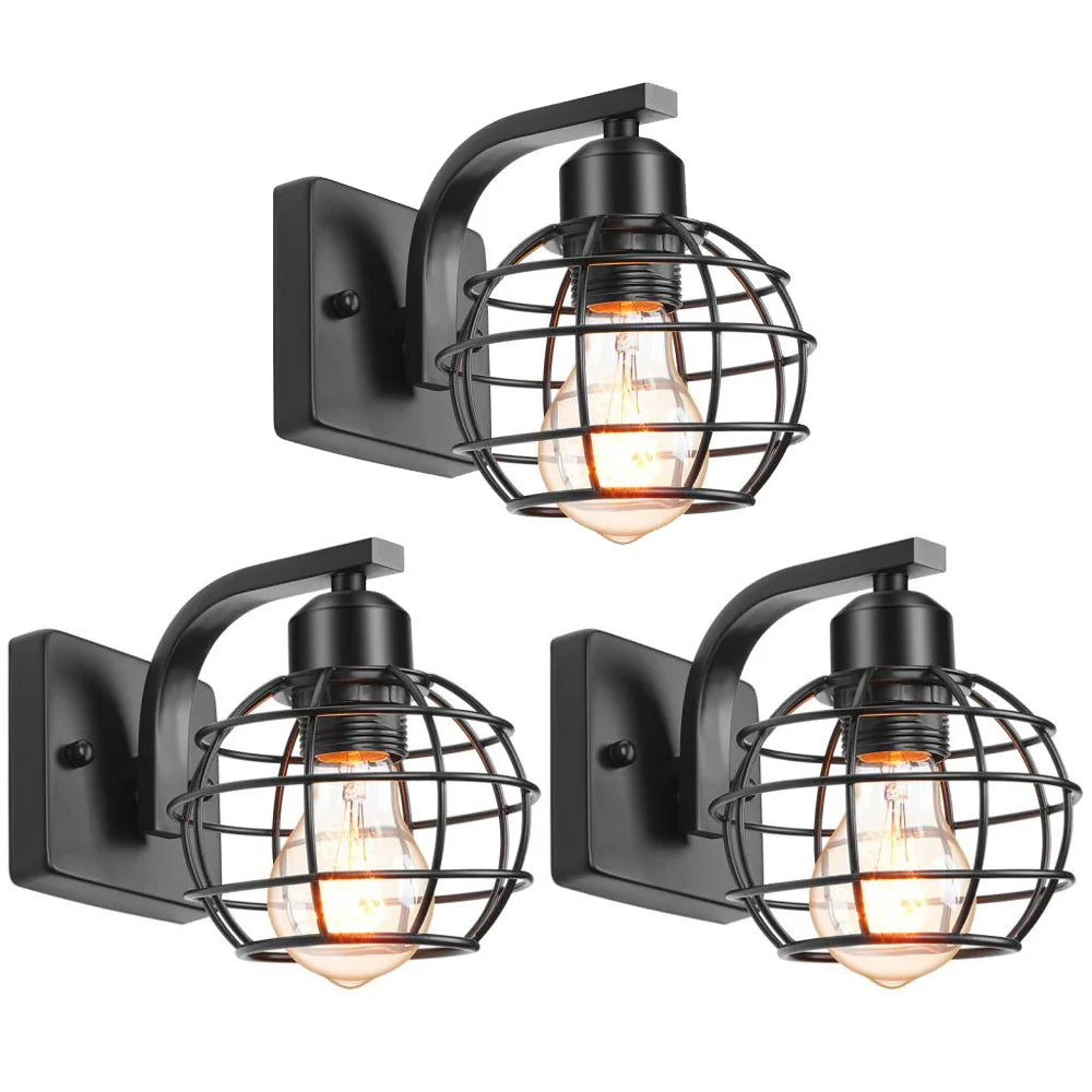Afralia™ Industrial Vintage LED Wall Light Iron Cage Sconce Indoor Lighting