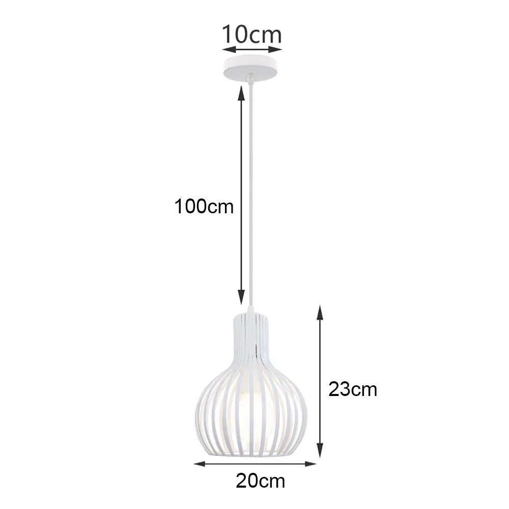 Crafted with high-quality materials, this pendant light is designed for durability and style. The lampshade, in a crisp white color, adds a touch of elegance to any room it illuminates. The cage-shaped design of the lampshade enhances the vintage appeal of the light fixture.