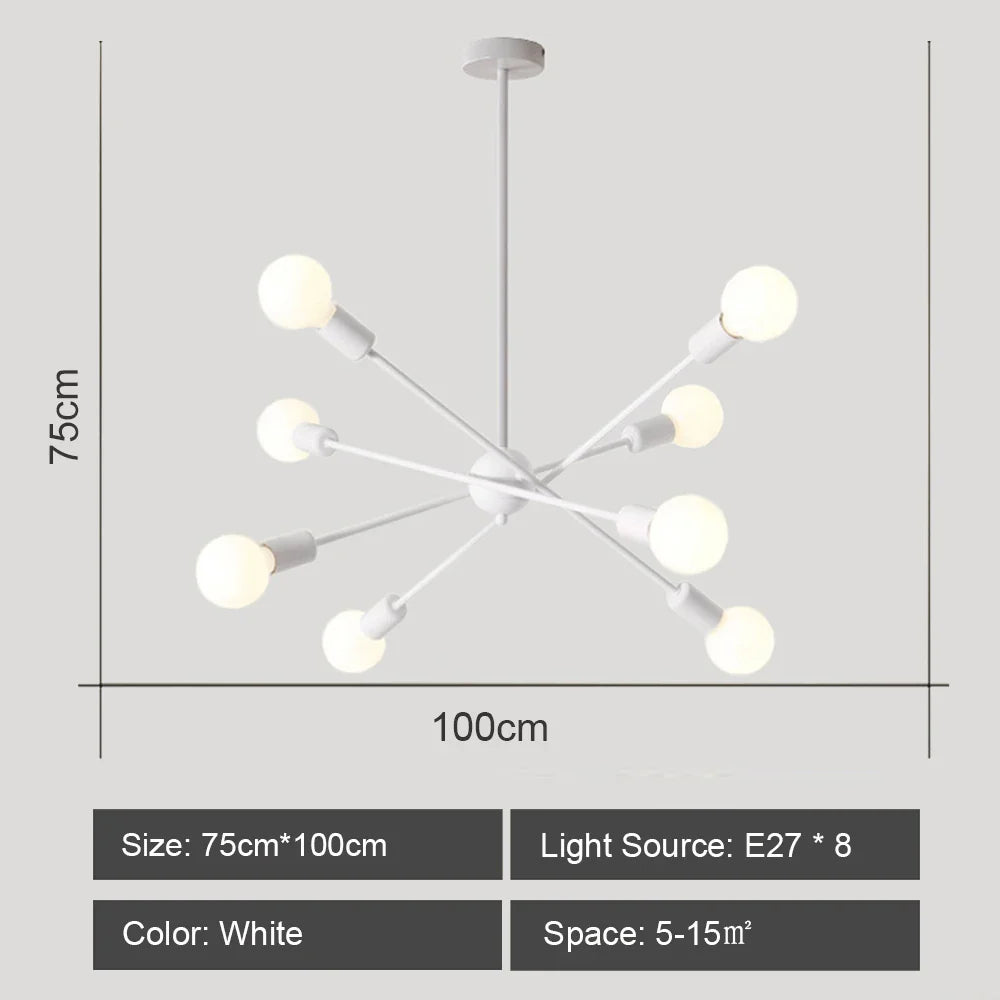 The Afralia™ Retro Industrial Loft Sputnik Chandelier is perfect for a variety of spaces, from the living room to the dining room, bedroom, study, and even the bathroom. Its versatile design and adaptable style make it a seamless addition to any interior.