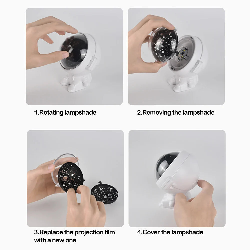 Afralia™ Rabbit Astronaut Music Box Night Light Astral Star Projector