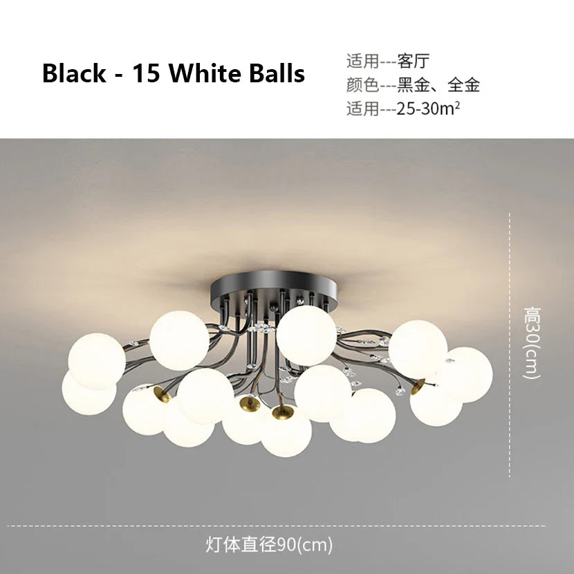 Elevate the ambiance of your living space with the enchanting Afralia™ Glass Bubble Ball LED Ceiling Light in Black Gold Crystal. This stunning ceiling light fixture from HomeLover seamlessly combines modern aesthetics with timeless elegance, creating a captivating focal point for your bedroom or living room.