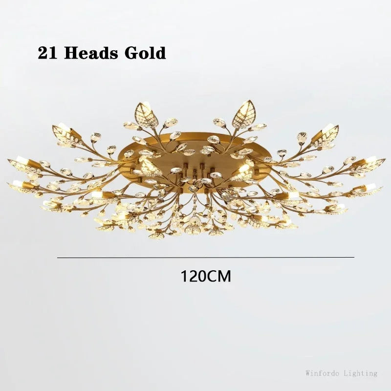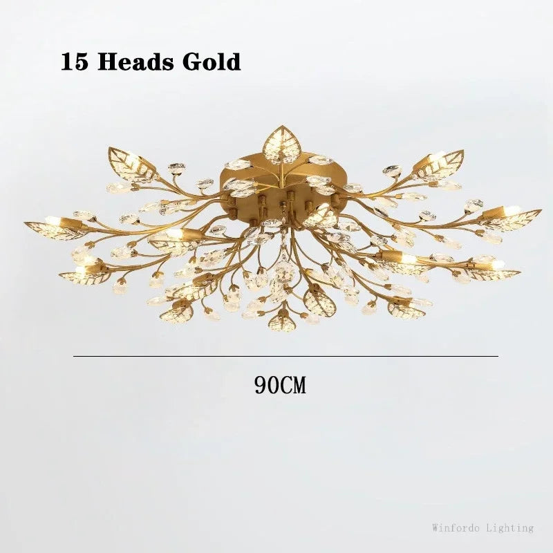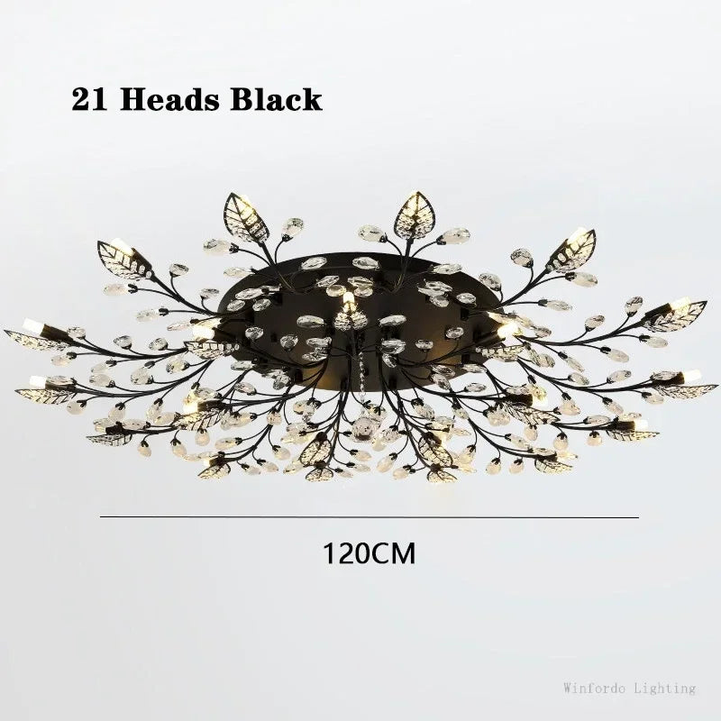 Introducing the stunning Afralia™ Modern Black Gold Leaves Crystal LED Ceiling Lamp, a luxurious addition to any living room or bedroom. This exquisite ceiling light exudes elegance and sophistication, enhancing the ambiance of your space.