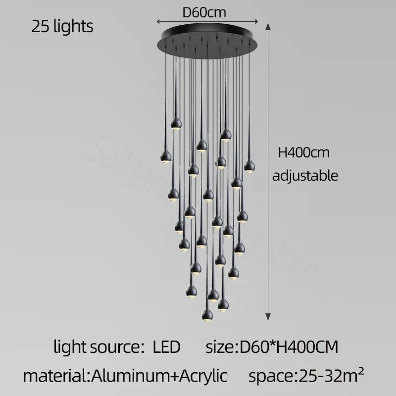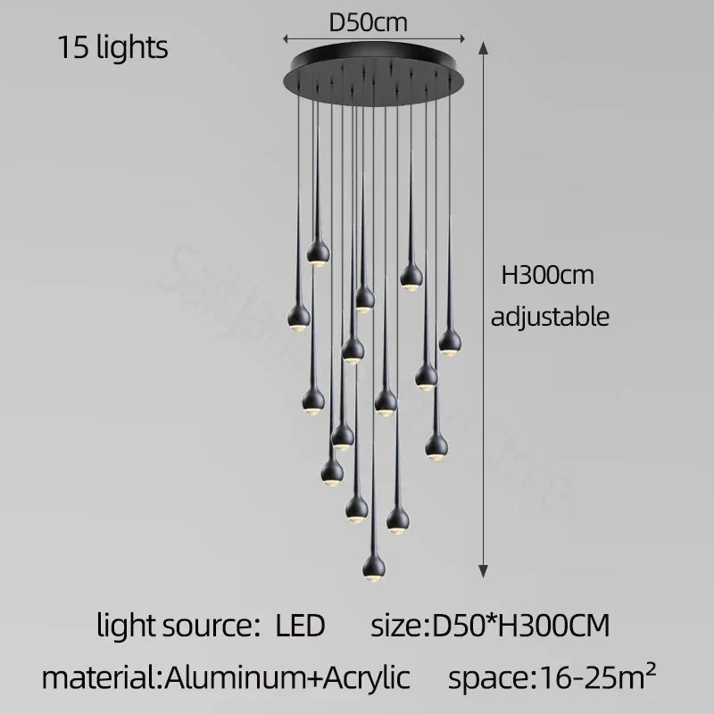 Introducing the Afralia™ Water Drop Pendant Light, a modern luxury chandelier designed for various spaces such as staircases, bedside tables, bars, and restaurants. This exquisite pendant light exudes elegance and sophistication, elevating the ambiance of any room it graces.