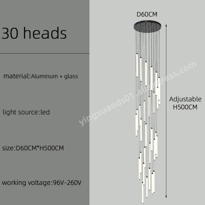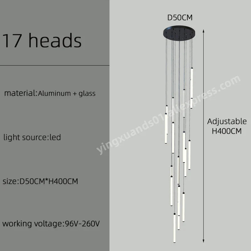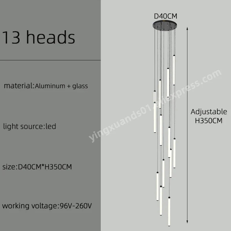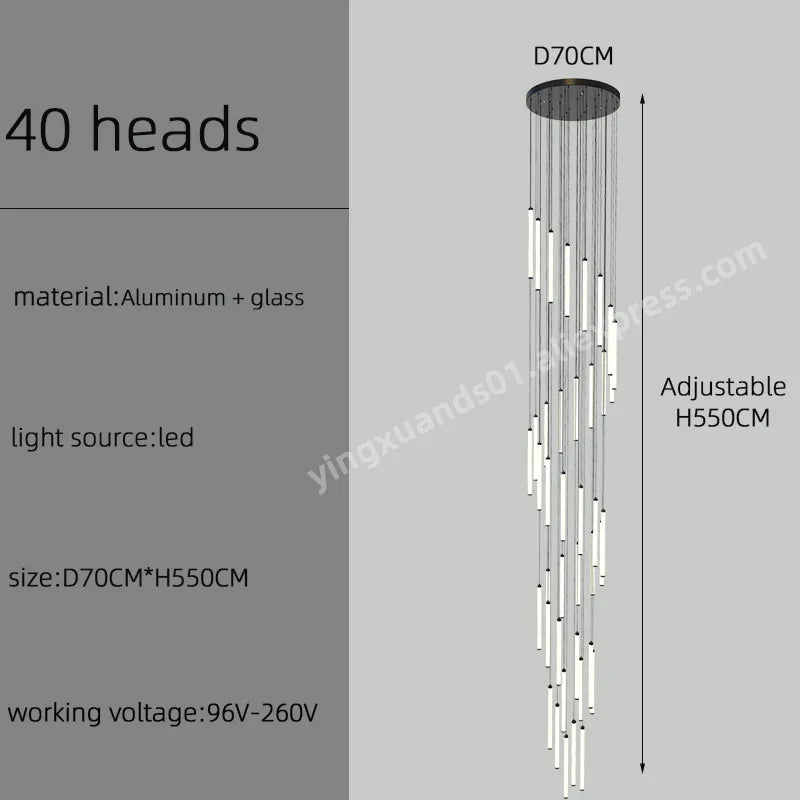 Introducing the Afralia™ LED Staircase Chandelier, a stunning lighting fixture designed to illuminate and elevate the ambiance of your home, hotel, or hall. This exquisite chandelier is crafted with precision and attention to detail, creating a captivating focal point in any space.