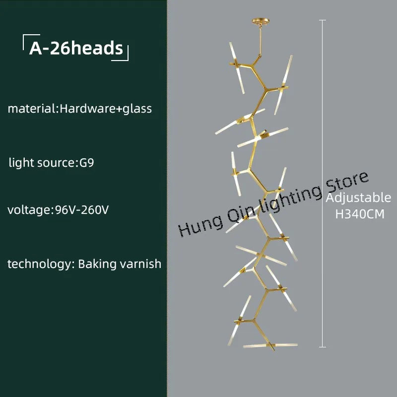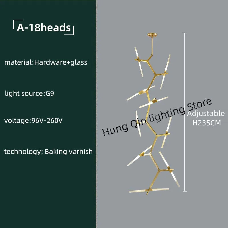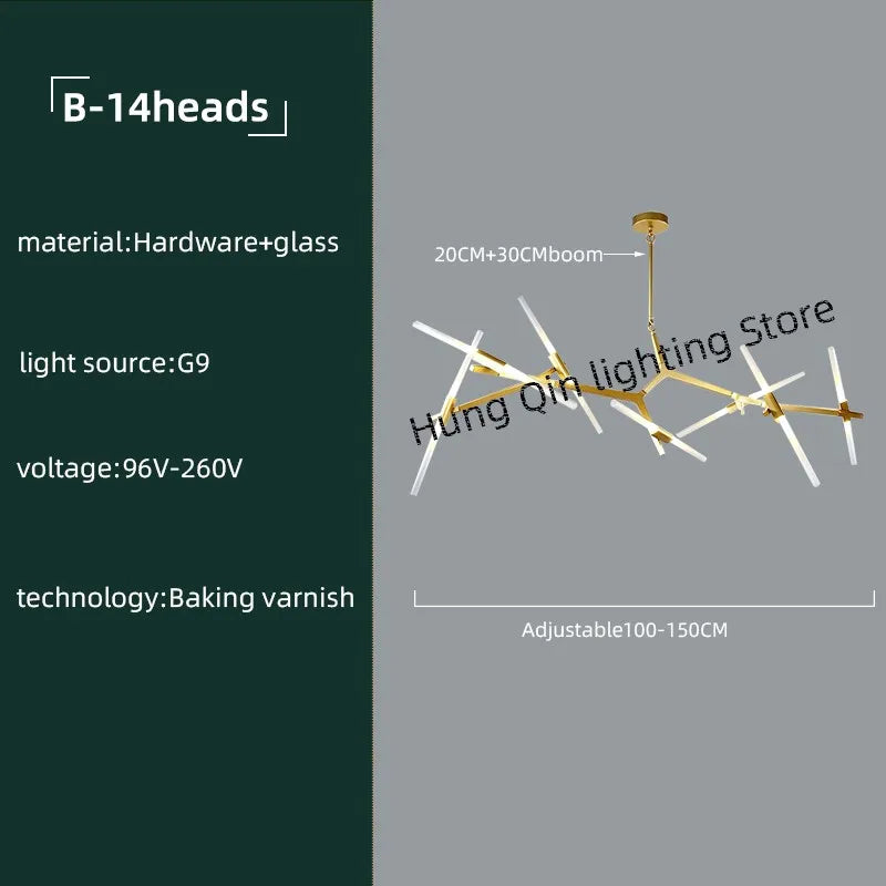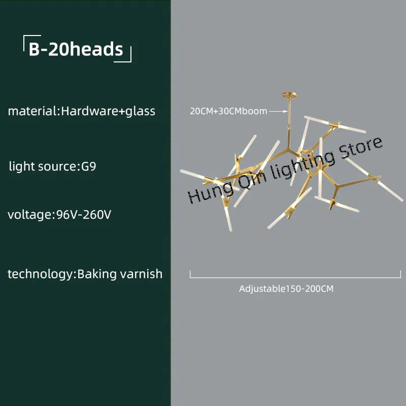 Perfect for a variety of settings, including the parlor, study, master bedroom, other bedrooms, hotel hall, or hotel room, this chandelier is a versatile lighting solution that enhances the aesthetic appeal of any space. The unique gold branch design adds a contemporary flair, making it a focal point in any room.