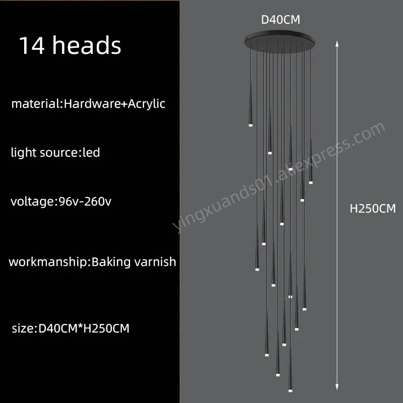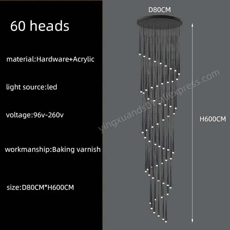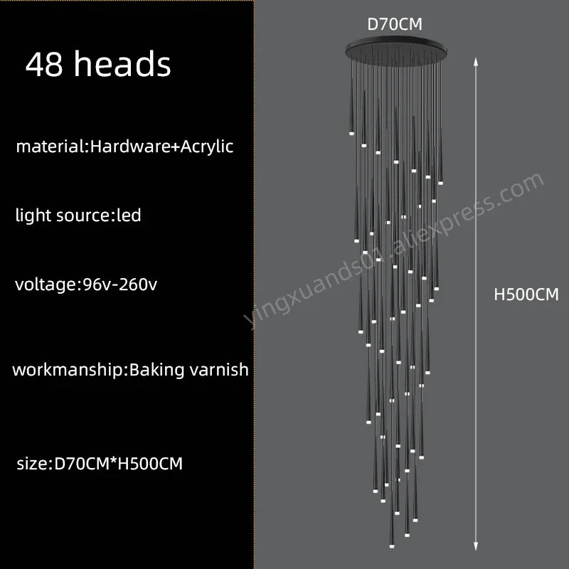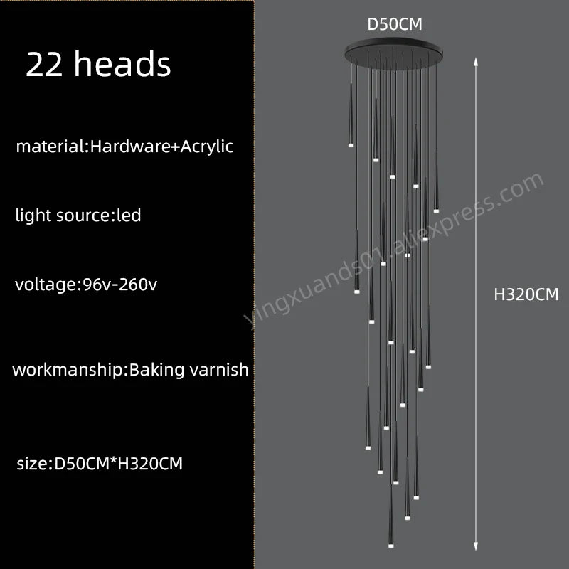 Designed for easy installation, this chandelier features a cord pendant setup and a convenient touch on/off switch for added convenience. The modern styling and suspended design make it a perfect fit for a villa staircase, bringing a touch of luxury to your home. Whether you're looking to add a statement piece to your living room or elevate the lighting in your home, this loft ceiling lighting chandelier is sure to impress.