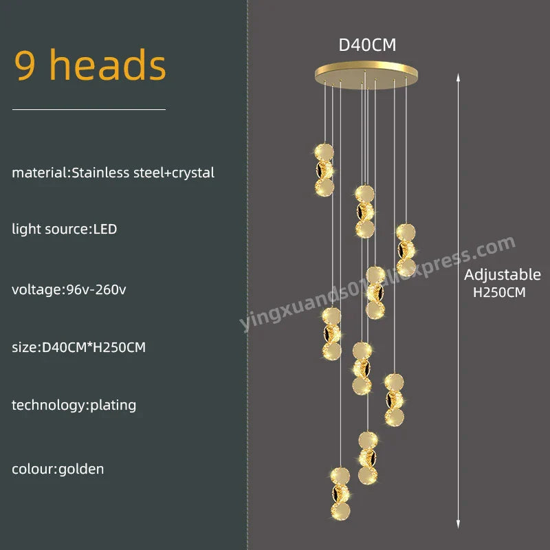 Afralia™ Gold Crystal Chandeliers LED Pendant Lamp for Modern Living Spaces