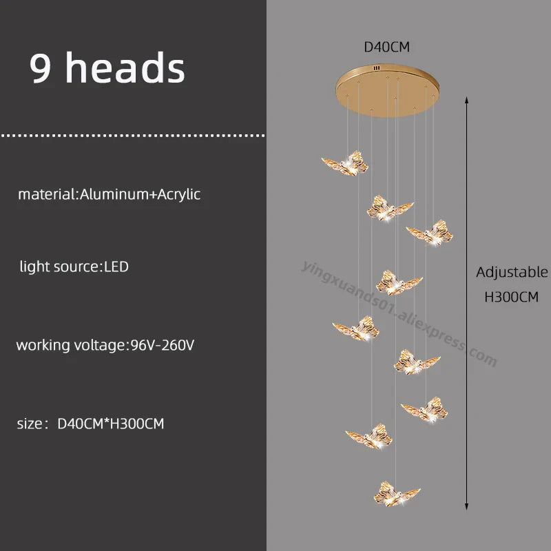 Crafted with attention to detail, this pendant light features a beautiful butterfly chandelier staircase design that adds a touch of elegance and sophistication to any room. The lighting suspension design creates a mesmerizing effect, making it a focal point in your home décor.