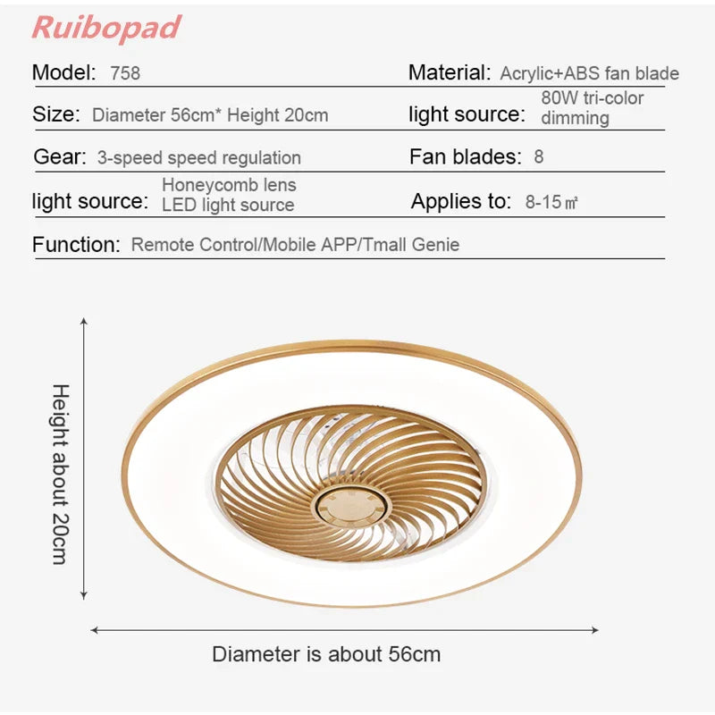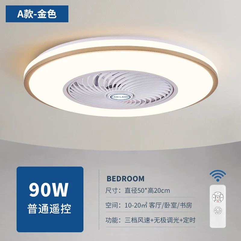 Afralia™ Modern Black 56cm Round Ceiling Fan with LED Light and Remote Control