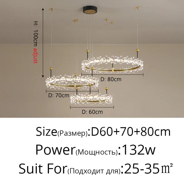 Crafted with attention to detail, this pendant light features a stunning gold lampshade that exudes elegance and style. The intricate design of the round ring flower crystal LED lamp creates a mesmerizing lighting effect, perfect for illuminating a parlor, study, master bedroom, other bedrooms, hotel hall, or hotel room.