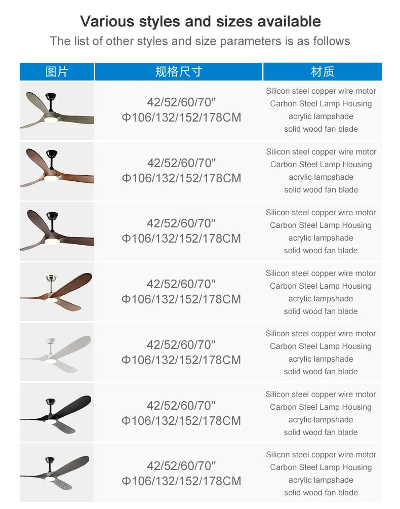 This Large Industrial Solid Wood Electric Ceiling Fan features a 52/60/70-inch blade span, providing optimal air circulation for a comfortable environment. The smart energy-saving design ensures efficient use of power without compromising on performance.