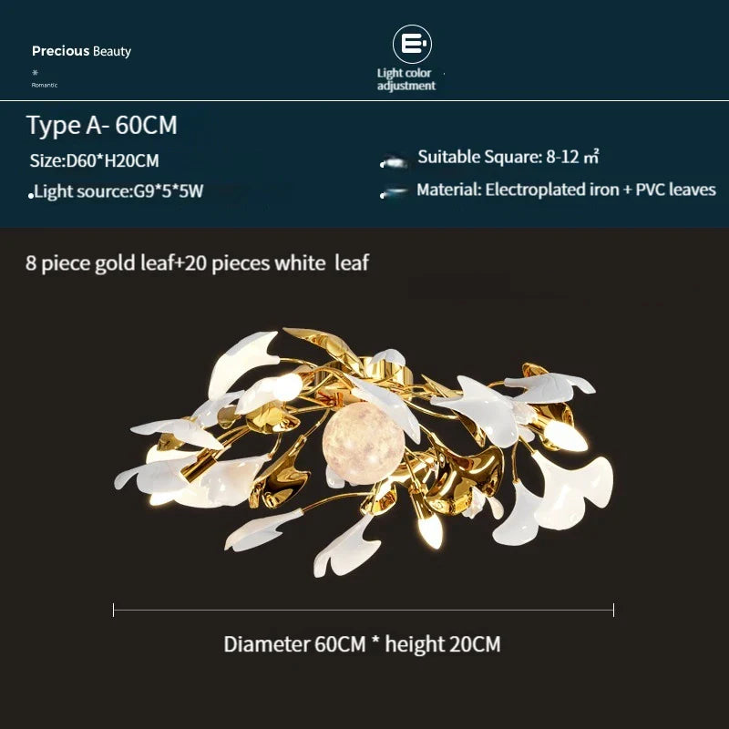 Illuminate your living room, hallway, bedroom, or any other room with the beauty of ginkgo leaf crystal accents. The gilding technics on the aluminum, PVC, and ironware + acrylic body materials create a luxurious appeal. The gold color adds a touch of sophistication to your décor.