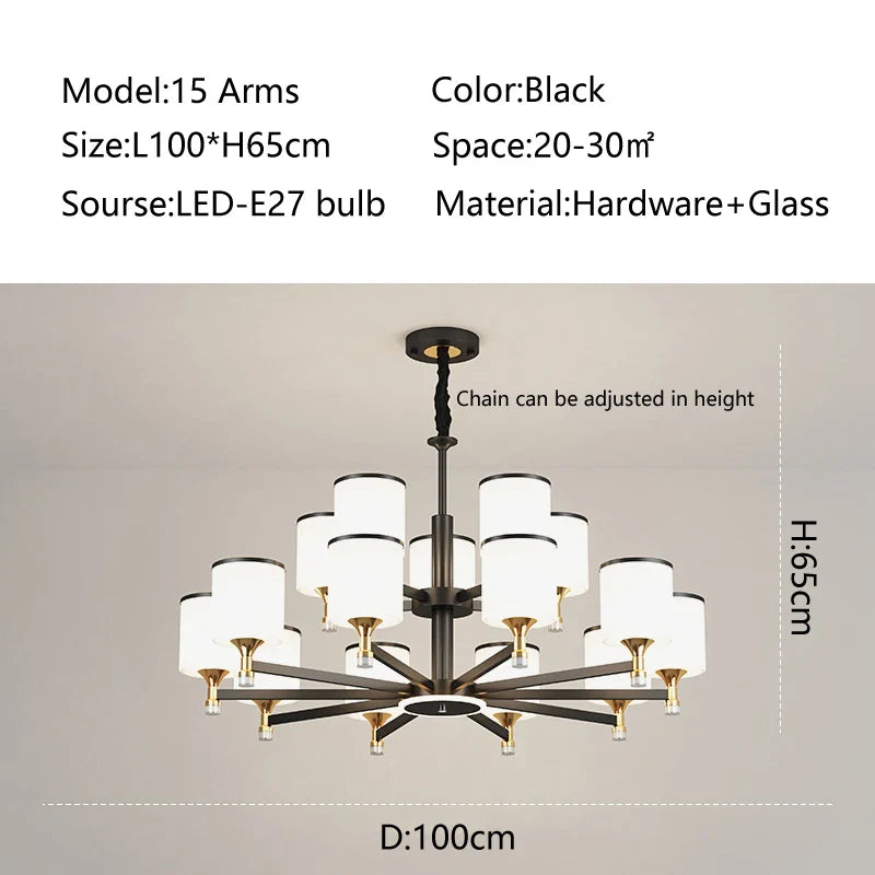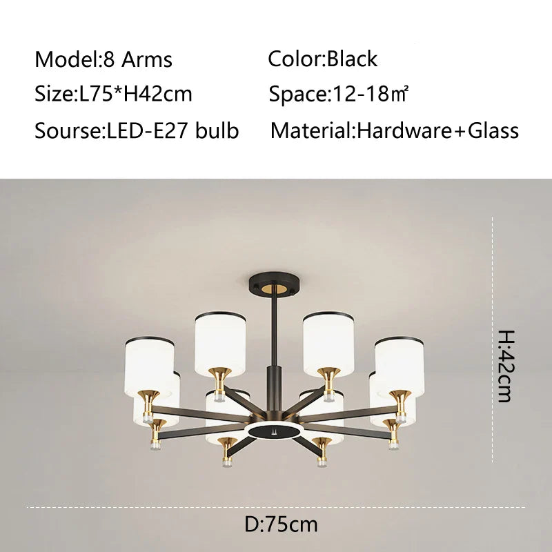 Crafted with high-quality materials, this chandelier is designed to impress. Its sleek iron body and frosted glass shades provide a perfect balance of sophistication and contemporary flair. The unique up and down shade direction adds a touch of drama, making it a stunning focal point in any room.