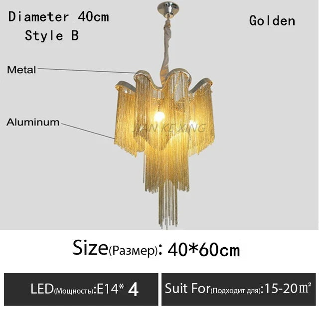 Introducing the Afralia™ Luxury Tassel Chandelier, a stunning addition to any living space. Elevate the ambiance of your home with this exquisite aluminum chain LED lighting fixture, perfect for the living room, loft, or villa.
