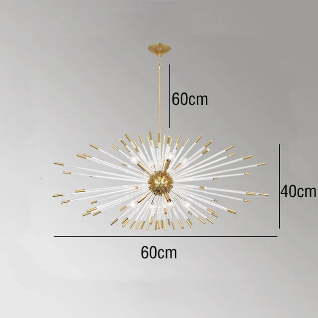 Crafted with attention to detail, the chandelier features a stunning design with crystal accents that sparkle and shine, adding a touch of glamour to your living space. The dandelion-inspired shape creates a mesmerizing display of light and shadow, casting a warm and inviting glow throughout the room.