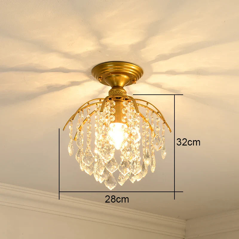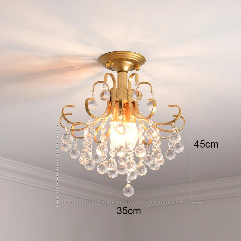 Crafted with premium quality materials, this ceiling fixture features a dazzling display of small gold crystals that beautifully reflect the light from the LED bulbs. The crystals effortlessly catch and disperse the light, creating a mesmerizing and enchanting atmosphere.
