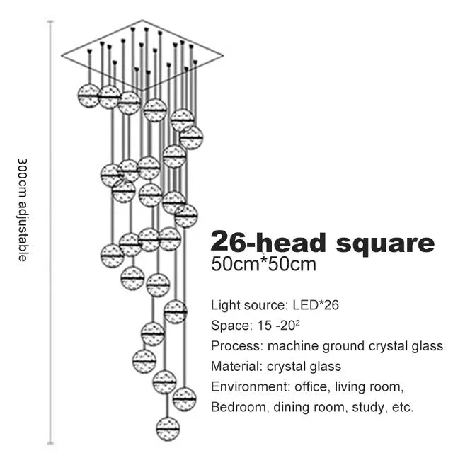 Crafted with high-quality stainless steel, this pendant light fixture is not only visually stunning but also durable. With more than 20 light sources, it provides ample lighting covering a 10-15 square meter area, making it ideal for various settings such as parlors, studies, master bedrooms, other bedrooms, hotel halls, and hotel rooms.