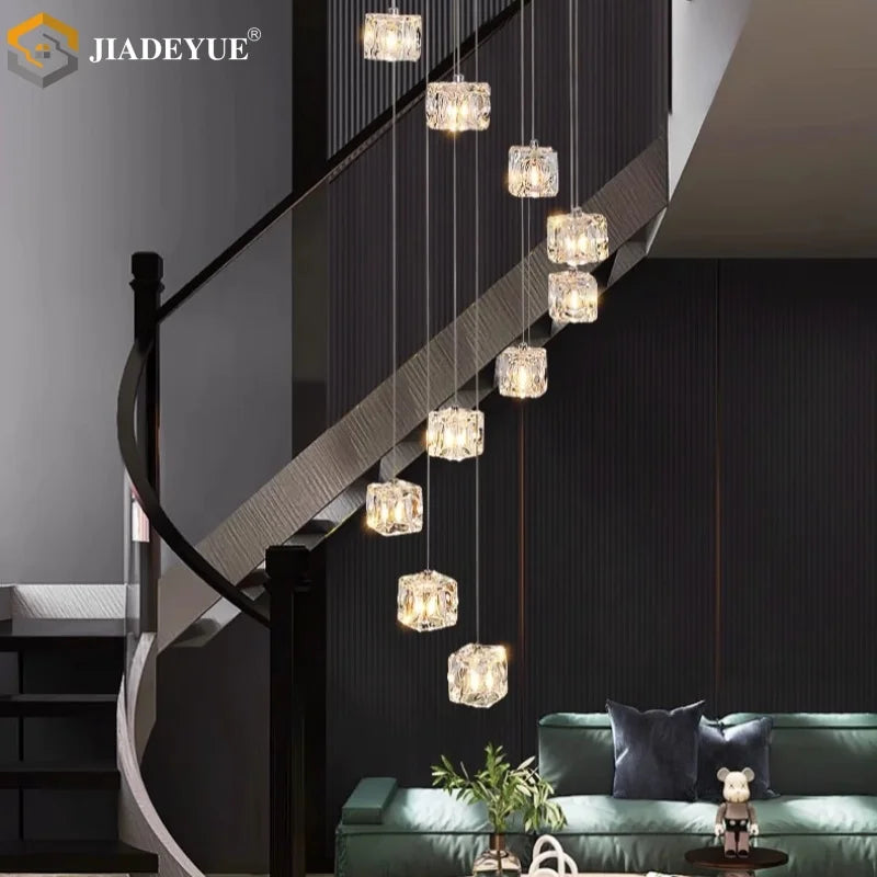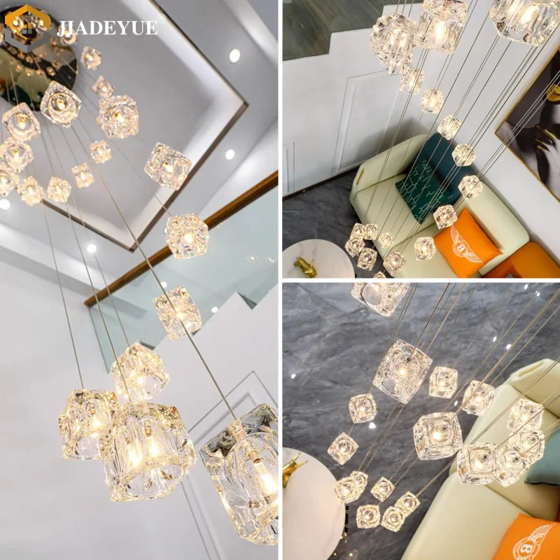 Afralia™ Rotating Cube Glass Chandelier LED Staircase Light