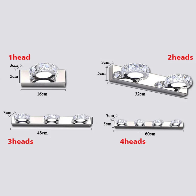 Afralia™ Stainless Steel LED Mirror Light Modern Bathroom Wall Lamps 2-4heads