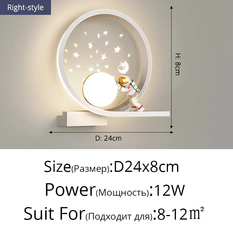 Experience the luxurious ambiance of the Afralia™ Moon Planet Astronaut Wall Lamp in your living room or bedroom. This modern-style wall lamp is designed to elevate the look and feel of your space with its sleek and sophisticated design.