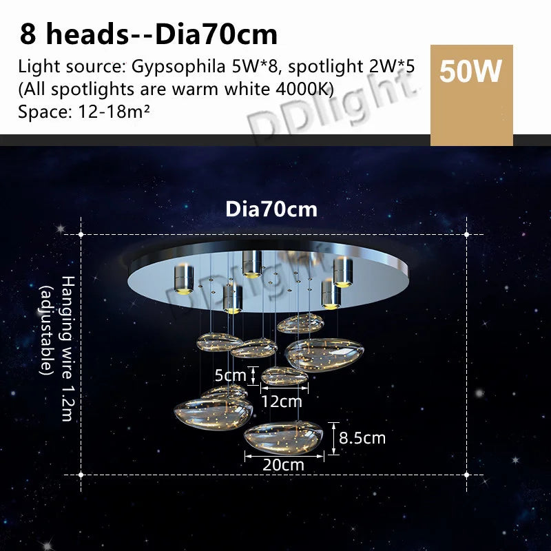 With eight LED light sources, this pendant light brightens up a generous area of 10-15 square meters, providing a warm and inviting ambiance. The multicolor adjustable LED bulbs allow you to customize the lighting to suit your mood and preferences, adding a unique touch to your space.