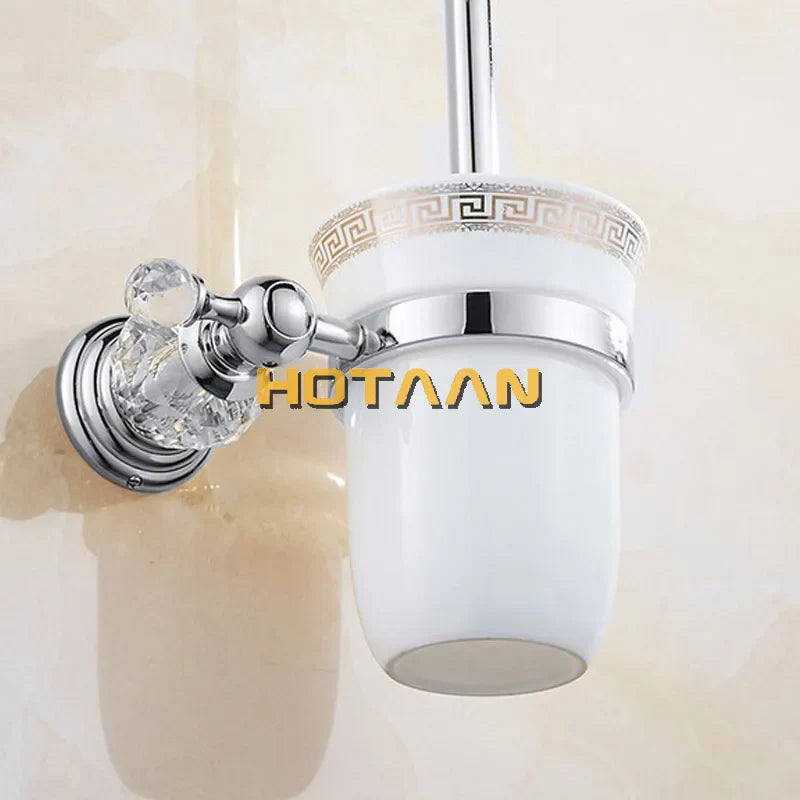 Afralia™ Crystal Silver Bathroom Accessories Set, Chrome Polished Brass Bath Hardware