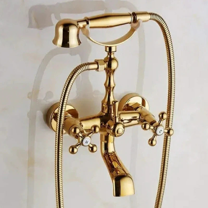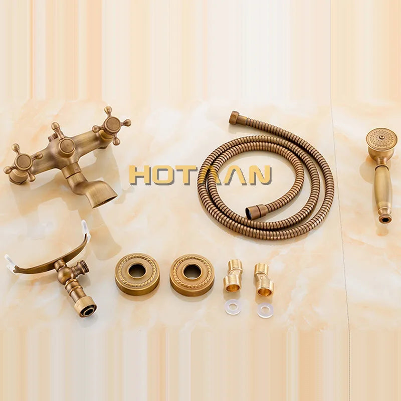 Afralia™ Antique Brass Shower Faucet Kit with Wall Mounted Hand Held Shower Head