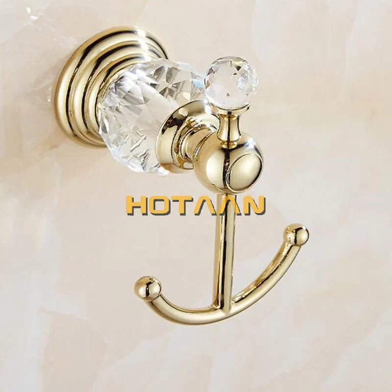 Afralia™ Gold Crystal Robe Hook Towel Rack for Elegant Bathroom Decor