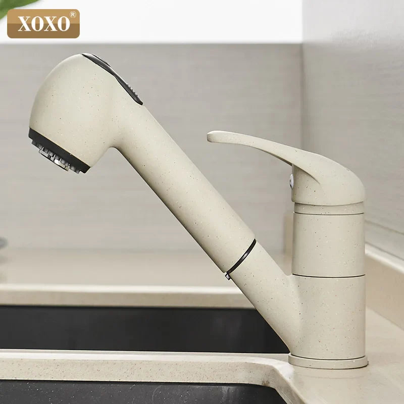The Afralia™ Black Polished Kitchen Faucet features a single handle design, making it easy to control the temperature and flow of water with precision. The ceramic valve core ensures durability and reliability, while the pull-down spray type offers added convenience for washing dishes and utensils.