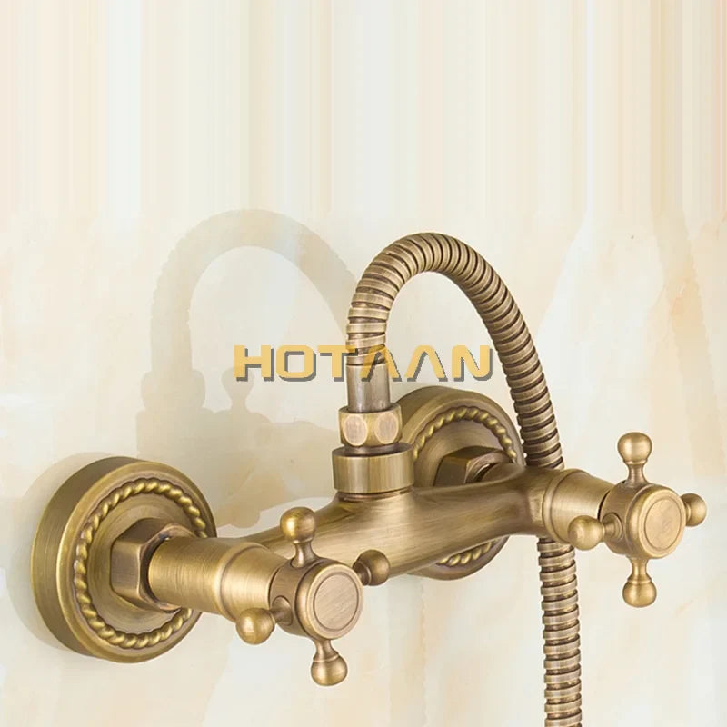 Afralia™ Antique Brass Hand Held Shower Kit - Wall Mounted Bathroom Shower Faucet