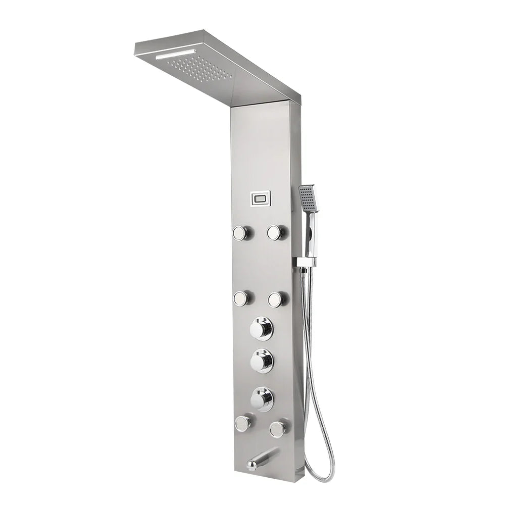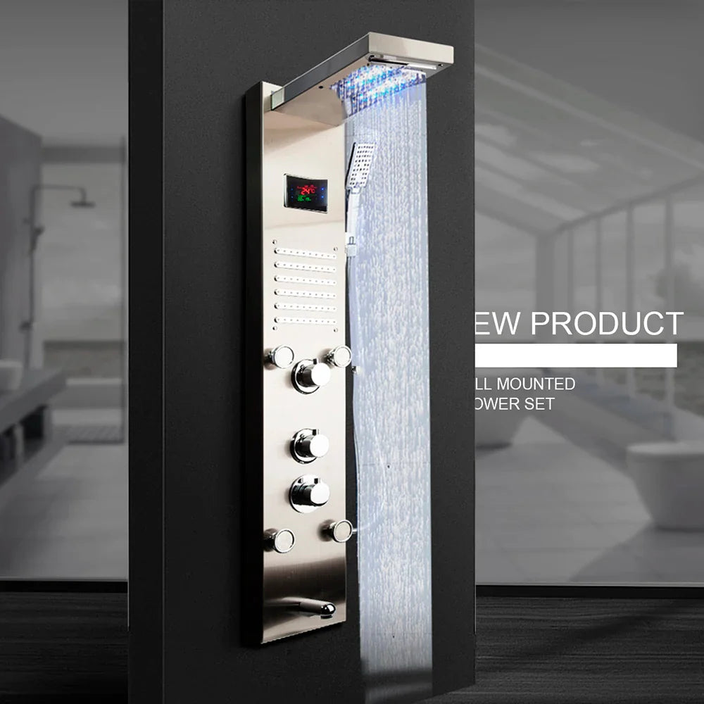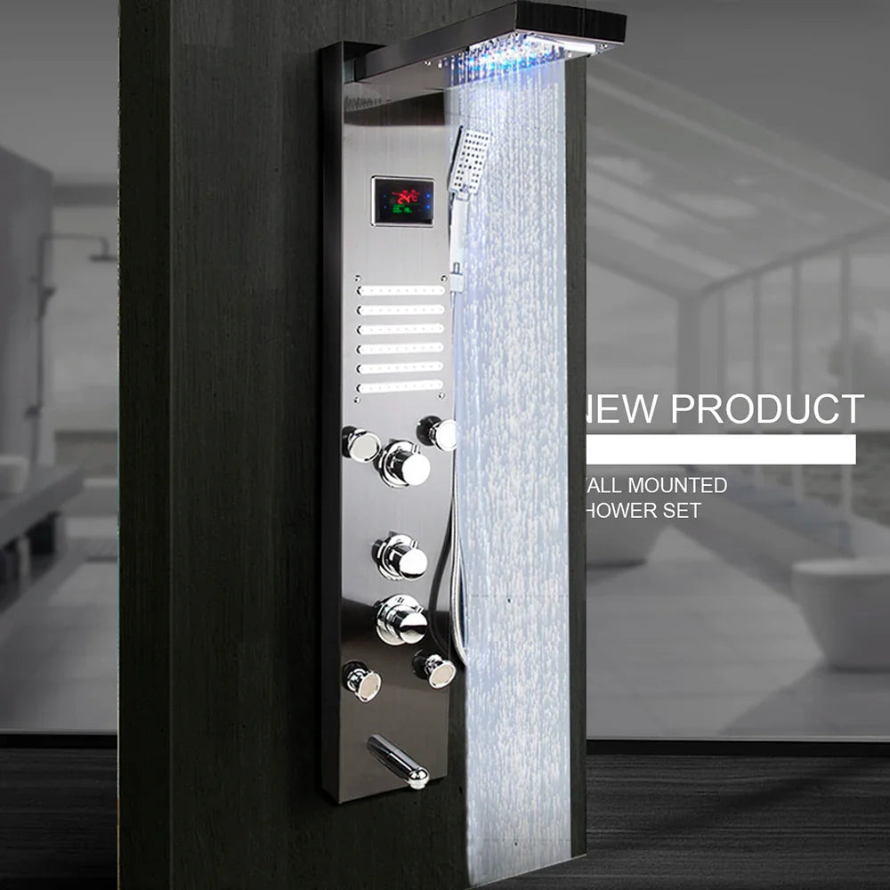 Upgrade your bathroom with the Afralia™ LED Panel Bath Faucet with Digital Display and Massage Spa Jets, and transform your daily shower into a luxurious and invigorating experience. Enjoy the perfect blend of style, functionality, and comfort with this top-of-the-line fixture.