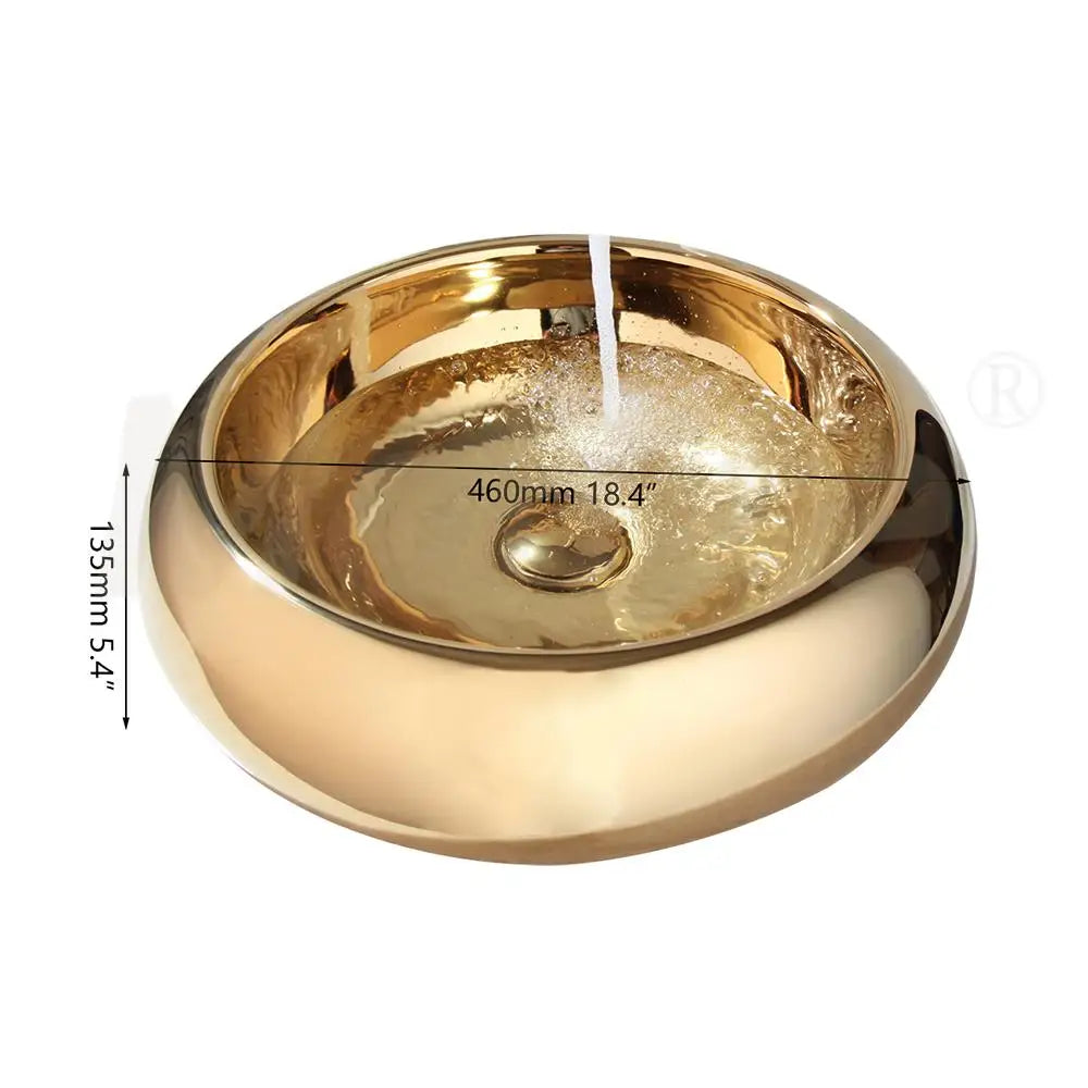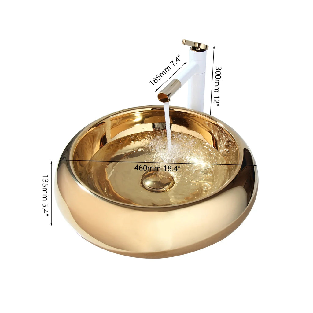 Afralia™ Golden Plated Round Ceramic Luxury Bath Mixer Set with Brass Faucet & Pop Drain