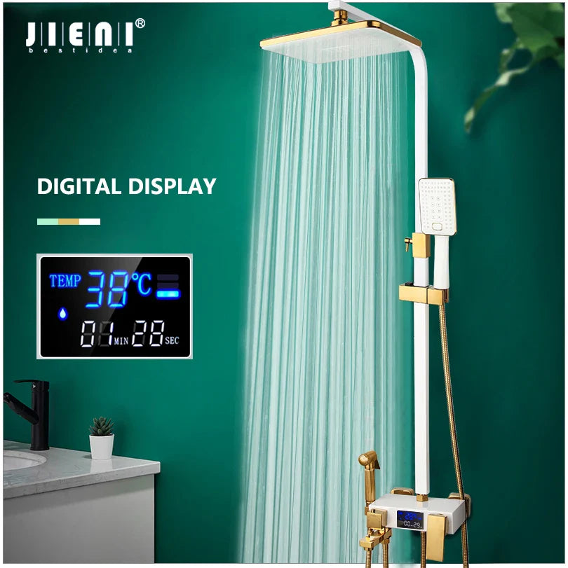 Afralia™ LED Digital Shower Set - Wall Mounted Thermo Mixer Square Spray