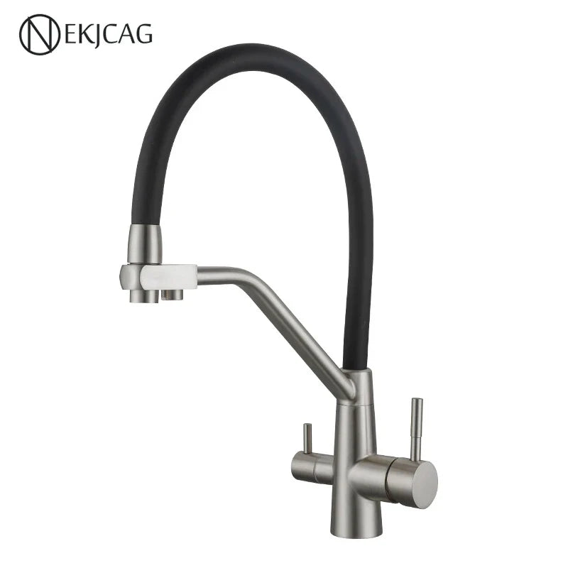 Crafted from high-quality STAINLESS STEEL, this deck-mounted faucet is designed for filtered water, providing you with clean and purified water whenever you need it. The dual-handle, dual-hole design is both practical and contemporary, adding a touch of elegance to your kitchen decor.