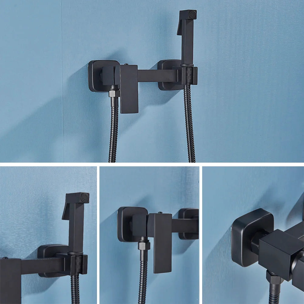 Afralia™ Brass Bidet Sprayer Faucet Set - Hot Cold Mixer, Wall Mounted Toilet Shattaf
