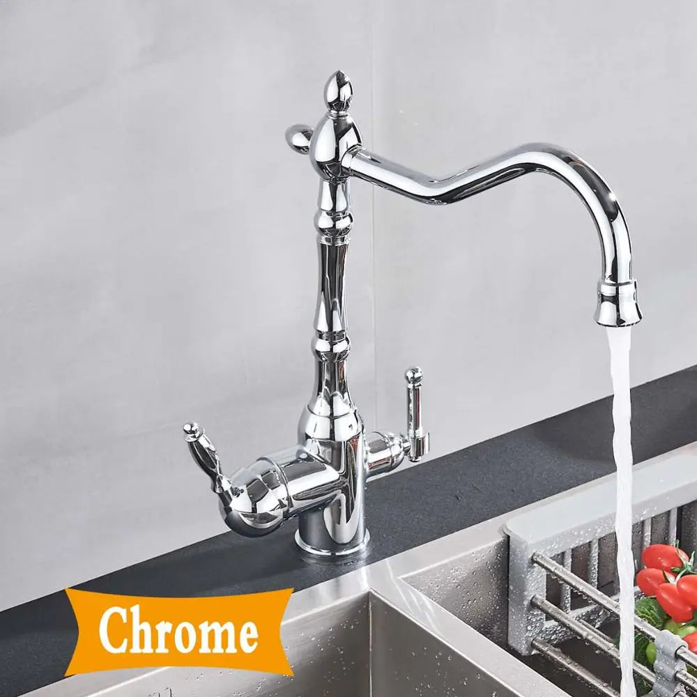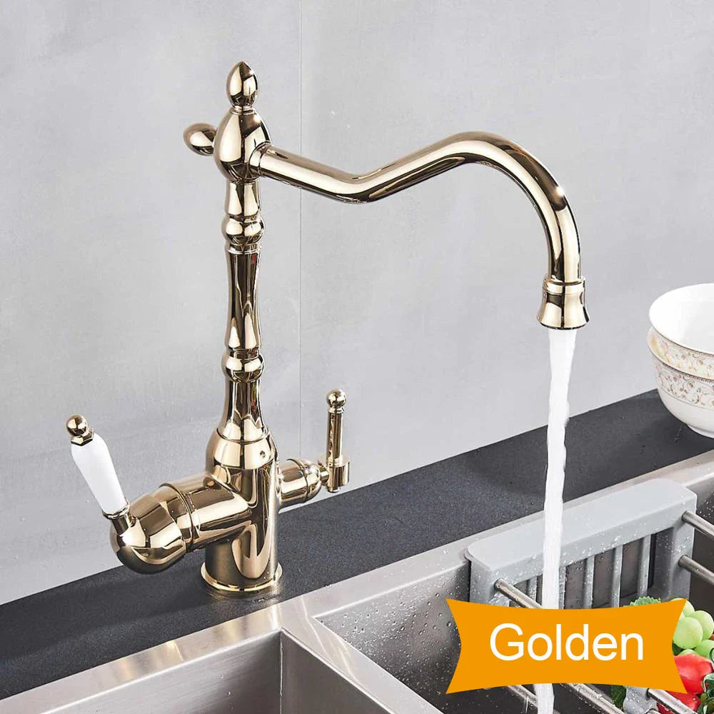 Choose from a range of finishes, including black, chrome, gold, and antique brass, to complement your kitchen's aesthetic perfectly. Upgrade your kitchen with the Afralia™ Gold Kitchen Filter Faucet and enjoy the perfect blend of style and functionality at your fingertips.